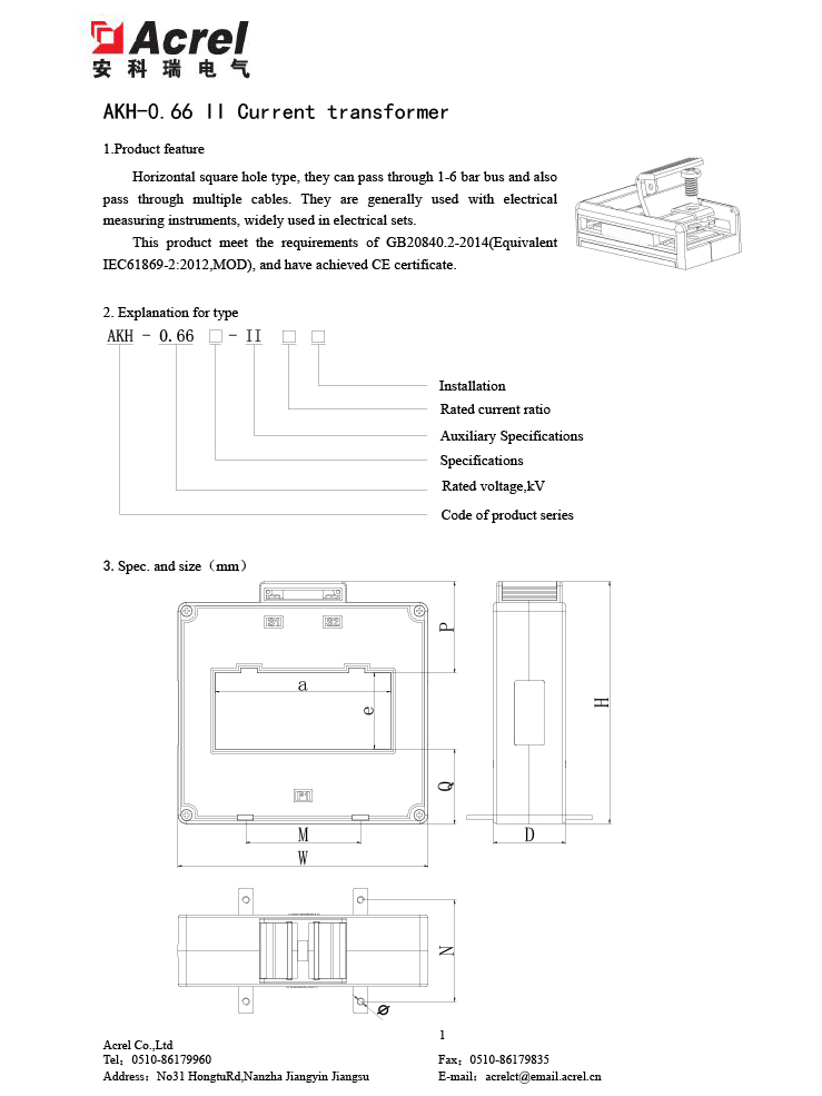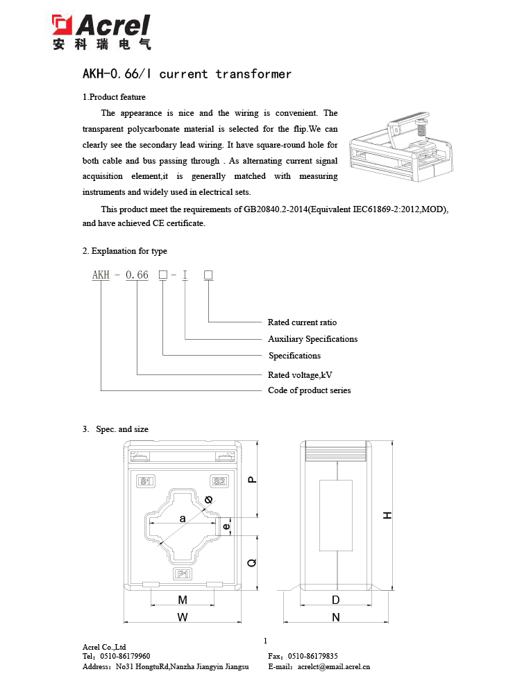 Solid core kasalukuyang transpormer